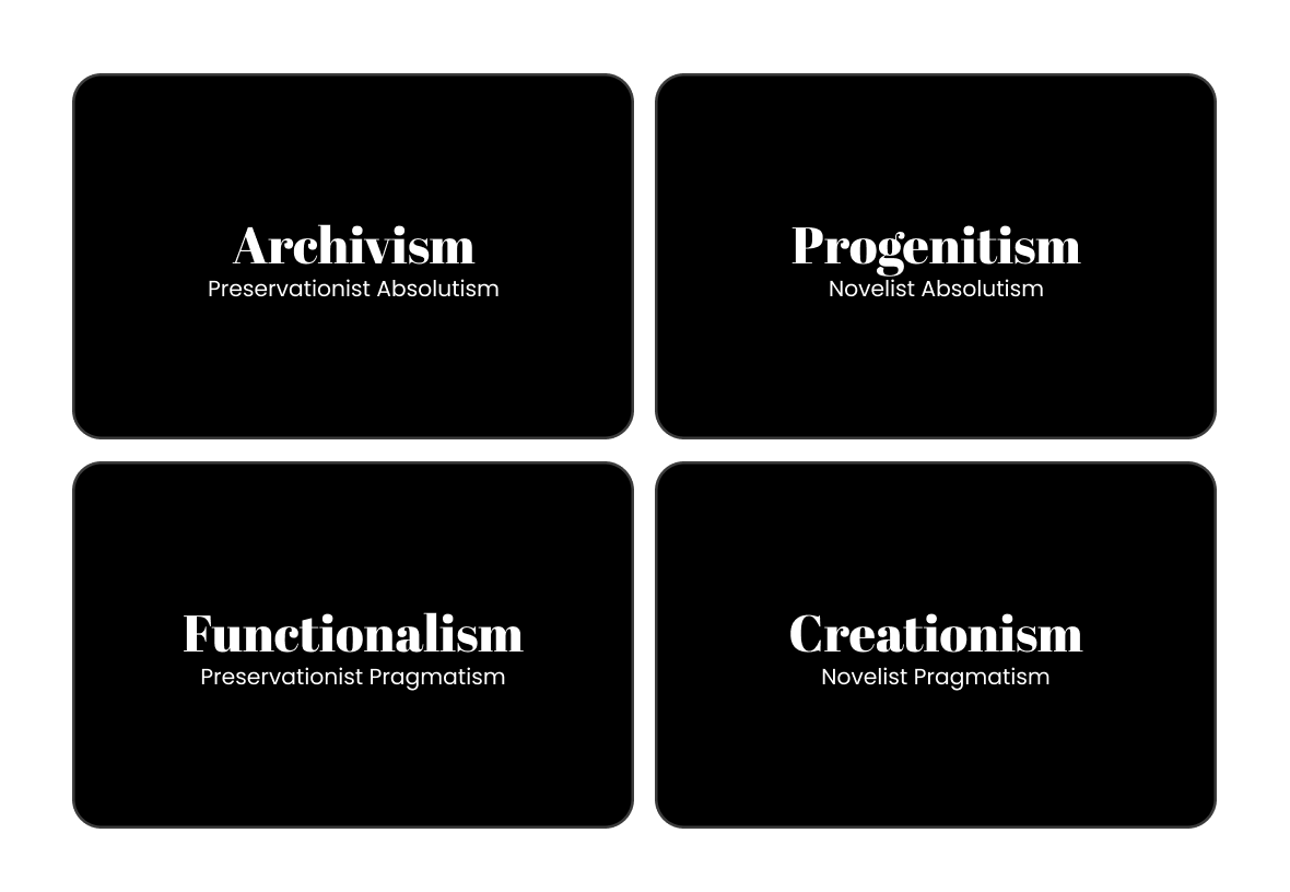 Like Functionalists, Creationists are pragmatists, but their focus is on the primacy of new text. They see deletion as a necessary burden rather than a sin. While they do not advocate for careless destruction, they believe that progress sometimes requires sacrifice. New text has more value than old, and this belief helps them justify difficult choices.